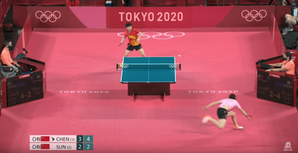 >In addition to its dedication to Sport, the Olympics are also dedicated to Gender Binary. According to Bobrow, where TT women’s games tend to focus more on speed, efficiency, and patterns; in men’s games, there tends to be more emphasis on strength, and you see players stand farther back from the table. However, that’s clearly an overgeneralization.