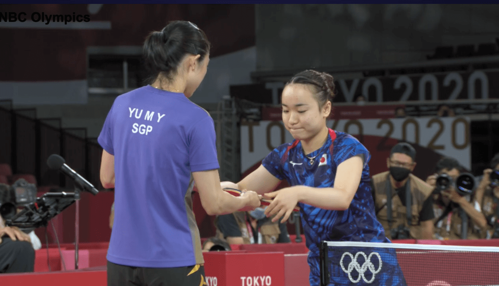 >Mima Ito wins! Maybe I should want Yu to win, because of the China-Japan rivalry, but eff nationalism, Mima is it. Also, we are both very short, and we both have stocky legs, and that is the kind of representation I needed as a pimply—or shall I say…pip-ly…—child growing up.