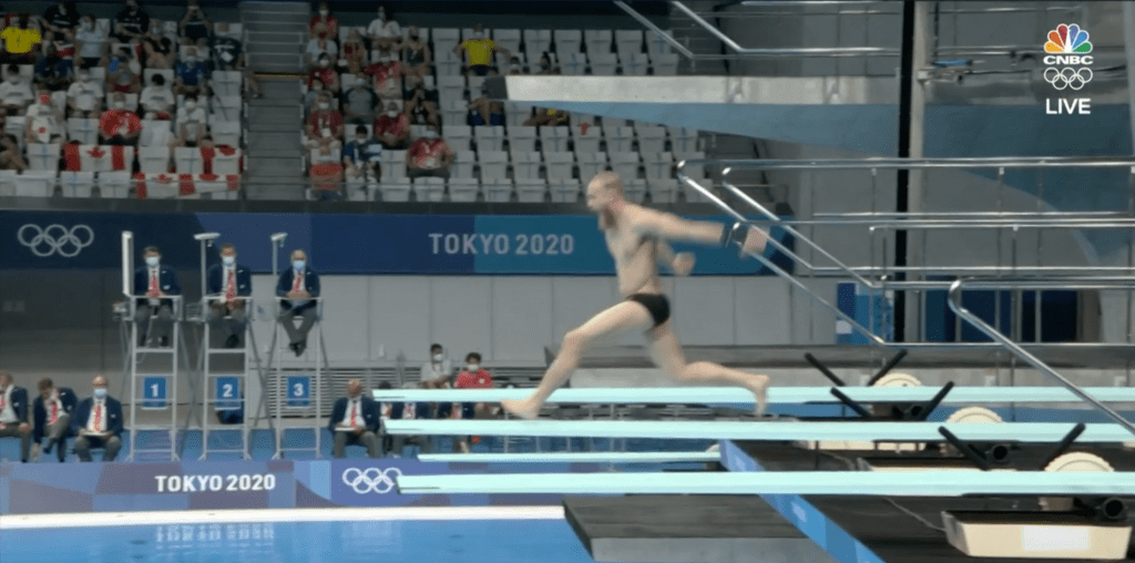 >Respect to Japanese diver Ken Terauchi who was just a few days shy of 41 when he competed in this event. Very moving to see him get a standing ovation for his last Olympic dive. He had previously retired after the 2008 Beijing Games (going on to take a position as the most overqualified sales rep at a sports equipment company in the history of sales reps at sports equipment companies). He then came out of retirement for Rio 2016, and Tokyo 2020 was his last lap. That makes six total Olympics over the course of 25 years.