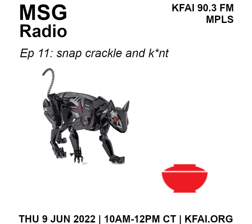 MSG Radio Ep 11: snap krackle and k*nt. Orig aired Jun 9, 2022. Listen here. Continue reading MSG Radio Ep 11 – 2022.06.09